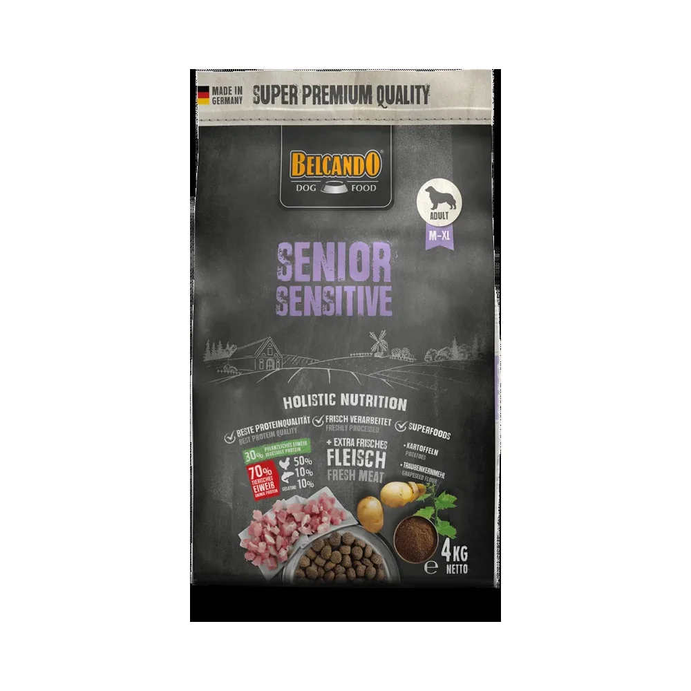 Belcando Senior Sensitive is the ideal food for older or sensitive dogs. As activity levels decrease with age, this formula provides a tailored energy content to prevent unwanted weight gain while ensuring your dog feels satiated through a higher proportion of raw fiber.